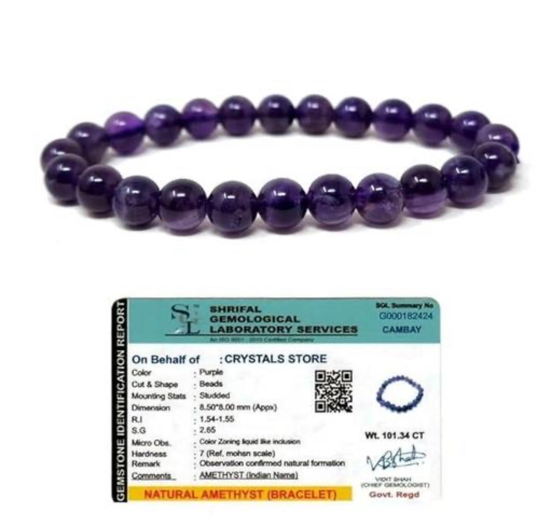 Certified Amethyst Natural Healing Stone Crystal Bracelet