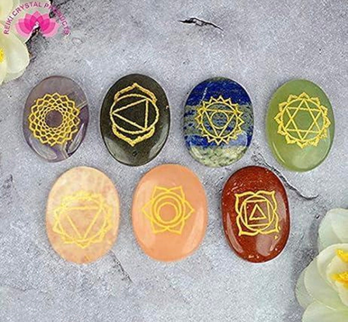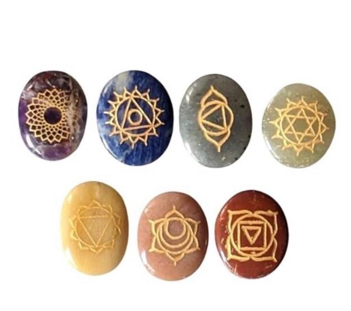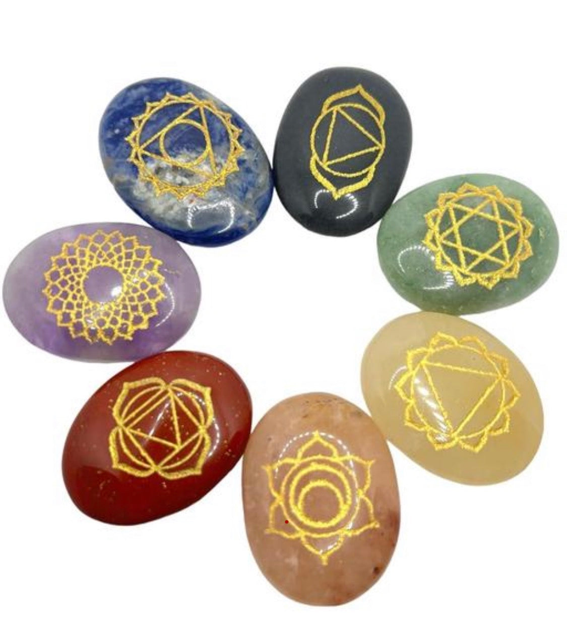 Natural 7 Chakra Engraved Oval Shape Stones for Reiki Crystal