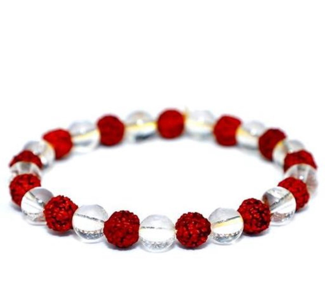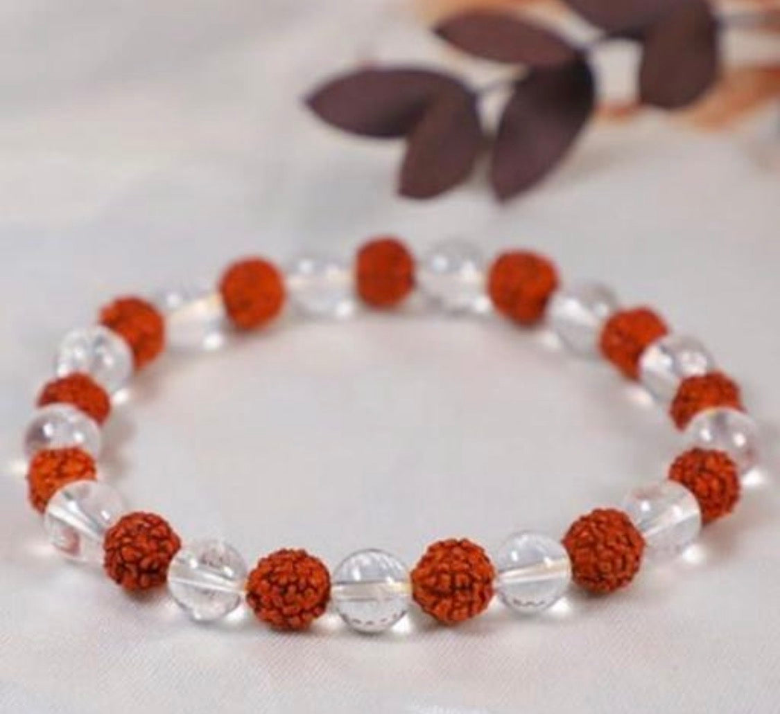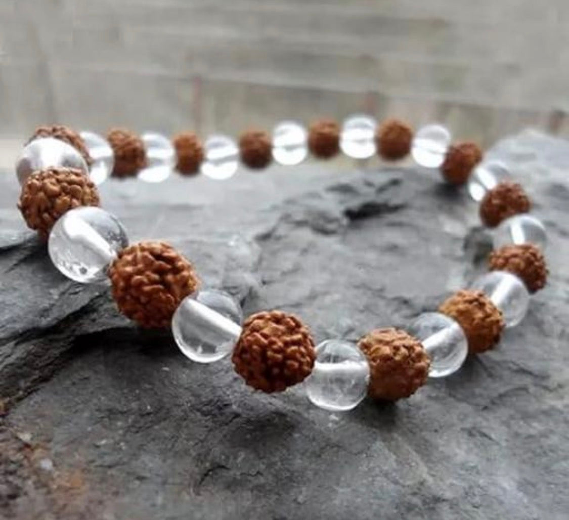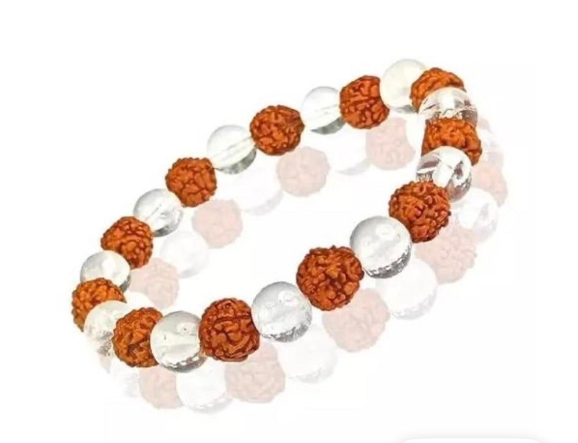 Natural Clear Quartz With Rudraksha Bracelet